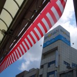 大通りに飾られた紅白の幕。何百メートルあるんだろう…長い!