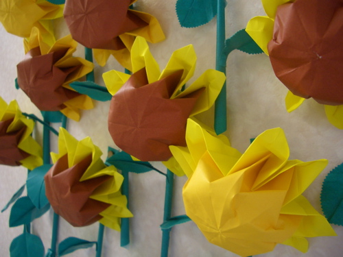 おやこ休憩室の折り紙でできた「ひまわり」