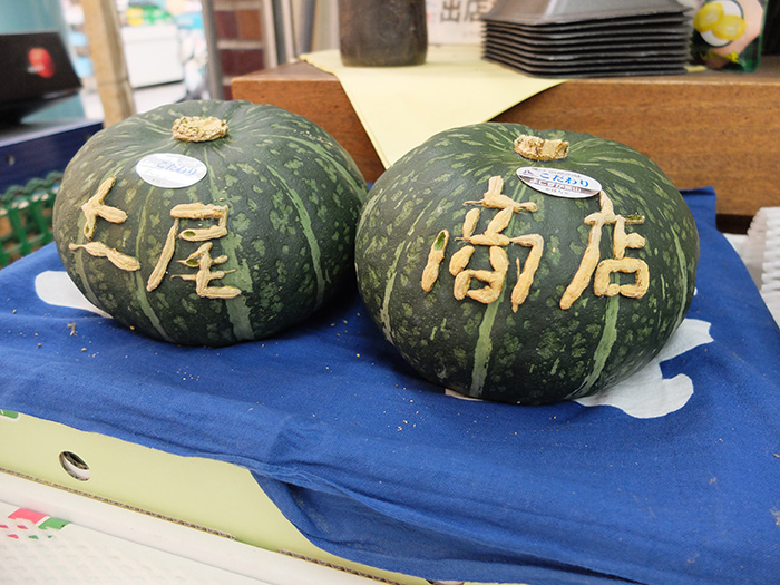 かぼちゃの表面に文字がでっぱてる!