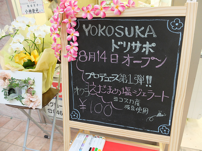 企画商品第一弾「えだまめを使用した塩ジェラート」や横須賀産の野菜を販売しています。