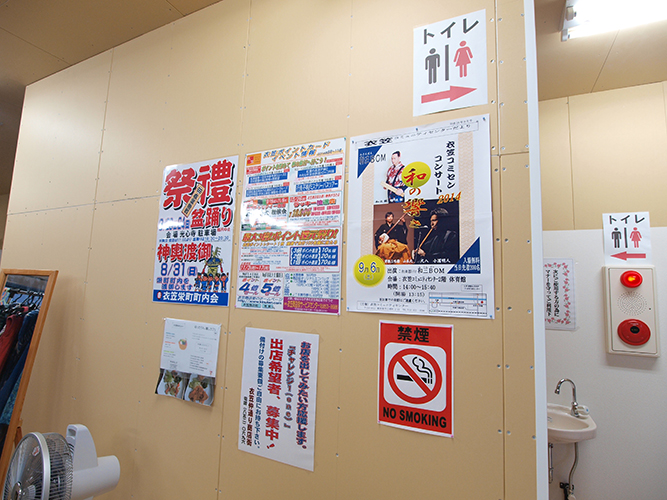 商店街に来たお客さんが みんなで使えるトイレ、椅子と机があり、コミュニティスペースとして利用できます。(ただし禁煙。お酒も飲んではいけません。)