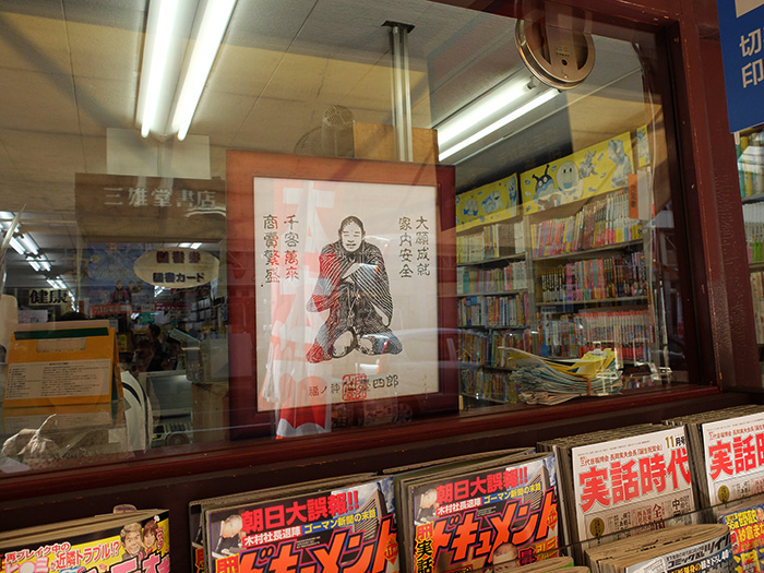 三雄堂書店さんの表に「福の神 仙臺四郎」と書いてある色紙が飾ってあります。