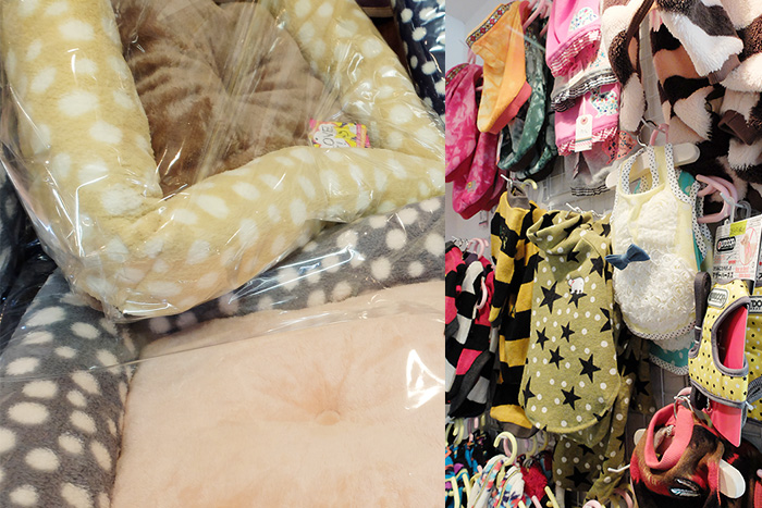 ワンちゃんもニャンちゃんも冬支度ですねって、ふわふわな洋服や寝床がそろっていました。