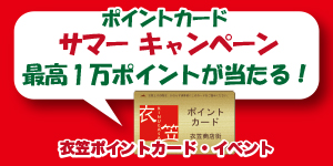 ※当選者様は衣笠商店街サービスセンターまで、衣笠ポイントカードをご持参ください。