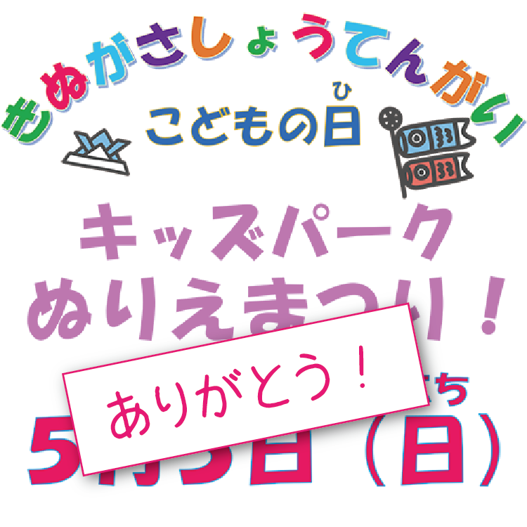先日のこどもの日、キッズパークで「ぬりえまつり」をして、みんなに描いてもらった ぬりえ を飾りました。