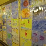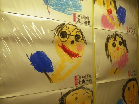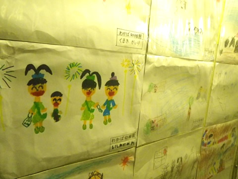 画1枚1枚、透明ビニールで丁寧に包んであって展示がとてもきれいです。電車の通り過ぎる音を聴きながらみんなの画はなかなかステキです♪
