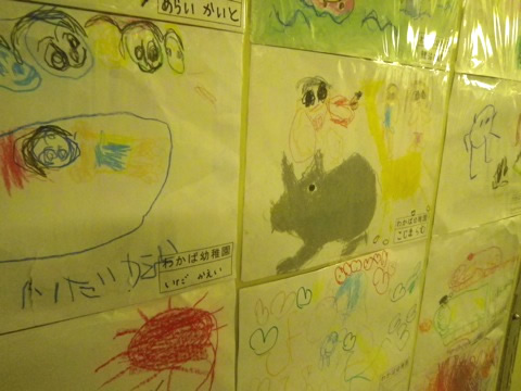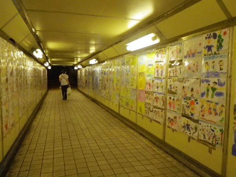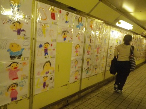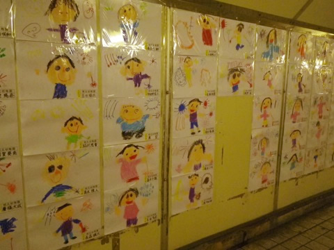 衣笠商店街から衣笠病院へぬける小さいトンネルで、かわいい展覧会がおこなわれています。
