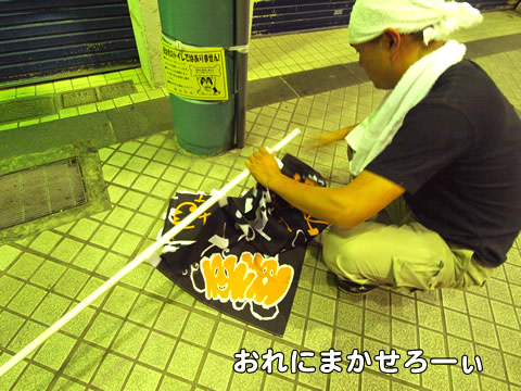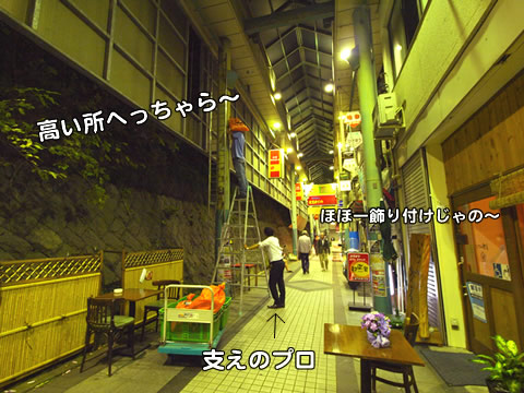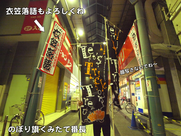 ハロウィン2011 飾り付け。 09/282011 一年振りに箱から出され、のぼり旗は 涼しい風に はたはたと きもちよさそうです。 衣笠商店街のイベント「ハロウィン2011」は10月29日土曜日開催。飾り付けの準備をしました。 お菓子もらって抽選券と写真コンテストでダブルチャンス! スケジュールは「衣笠商店街ハロウィン2011」
