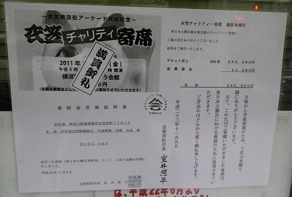 チケット売上と、会場に設置の復興募金を全額