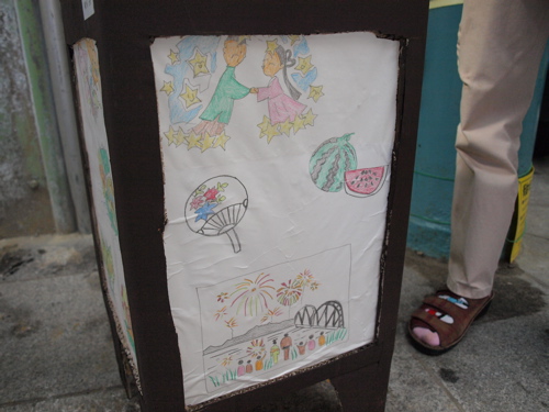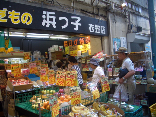 暑い夏 07/262010 サトちゃん夏服 シオカラトンボ拾いました ラムネで一休み 風が通って気持ちよい 24時間テレビTシャツ 24時間テレビTシャツ 野菜も果物も色鮮やかな季節です 灯ろうを修復したところ(キャラクターショップ「あい」さんが直したんだよ♪) 灯ろうの修復完了! のんびり掲示板を眺めながら 商店街を望む夕焼け 八百屋のおにいさんが言っていた。 「暑いね〜この夏の目標は、倒れないことだな 朝起きて店に出るまで倒れない 店が終わって家に買えるまで倒れない。ってね(^^;)」 商店街では冷房とは無縁のオープンな店が多いから お客さんとの「暑いね〜」って会話もリアルです。 *** 暑い夏がしばらく続きそうです。 商店街には涼しいところもいろいろあります。 お店でベンチを用意しているところもあります。 のんびり雰囲気な衣笠商店街の歩き方は“ひとやすみひとやすみ”です♪
