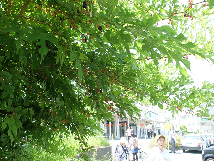 衣笠駅前のあたらしい風景 05/182015 かながわ信用金庫が新築オープンし、きれいな建物がお目見えしました。 屋上には武士の名が書かれた旗が12本、初夏の風になびいていました。 よーく見てみると。。。わかるかな?壁面の時計の右に三浦一族の家紋「引両紋」がデザインされています。 向かって右の交番も新装。 衣笠駅前のあらたな風景です。 衣笠駅の横の桑の実もおいしそうな色をつけていました。