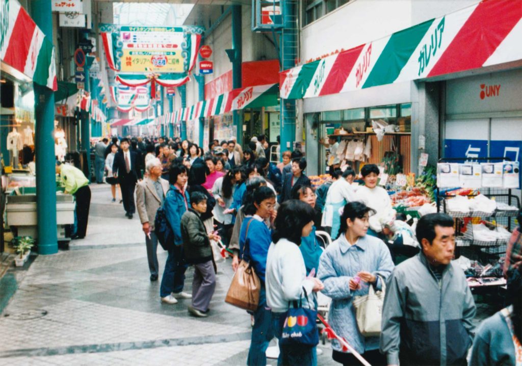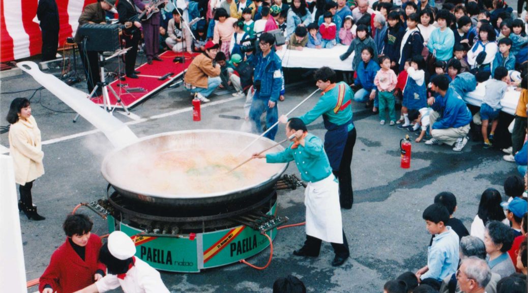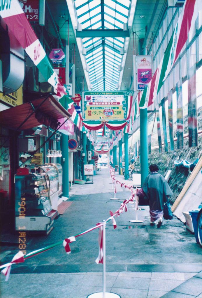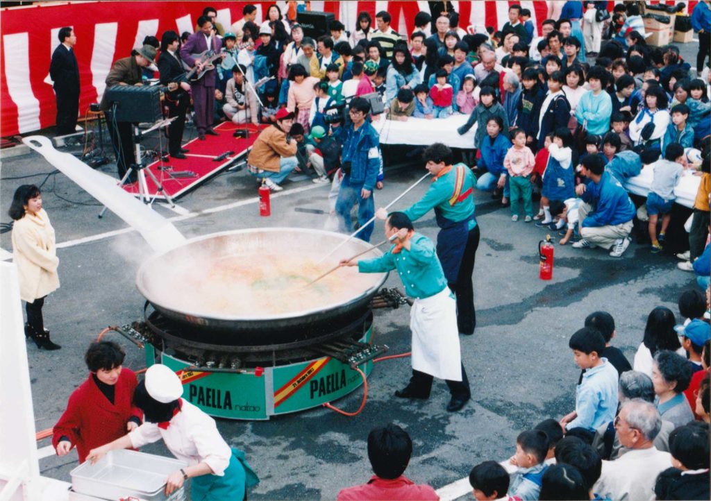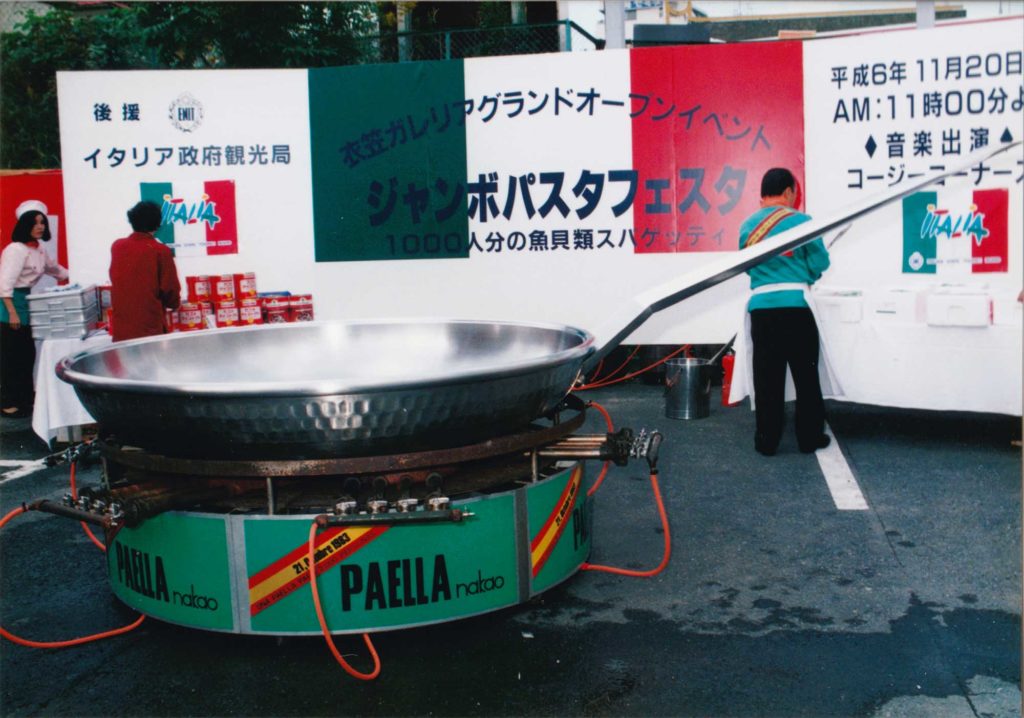 説明:衣笠仲通り商店街のアーケード完成イベント「衣笠ガレリアグランドオープンイベント」イタリアが衣笠にやってきた。衣笠駅前で1000人分の魚介類スパゲッティ「ジャンボパスタフェスタ」